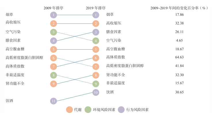 2009和2019年,影響中國(guó)60歲及以上老年人群健康的危險(xiǎn)因素順序發(fā)生變化